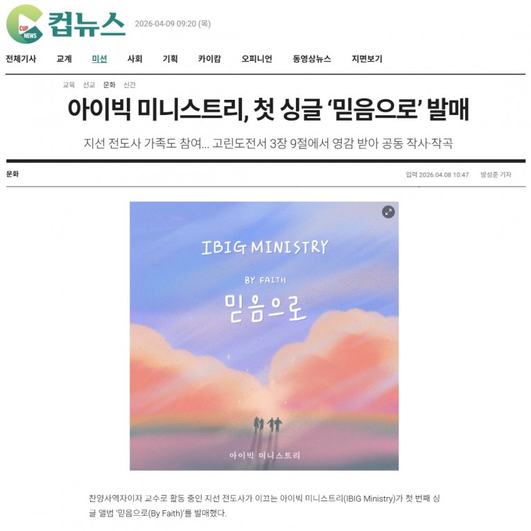 [기사] 아이빅 미니스트리, 첫 싱글 ‘믿음으로’ 발매(크리스챤연합신문 컵뉴스)