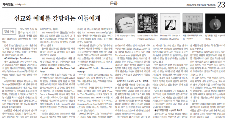 [기획기사] [앨범 추천] 선교와 예배를 갈망하는 이들에게(기독일보)