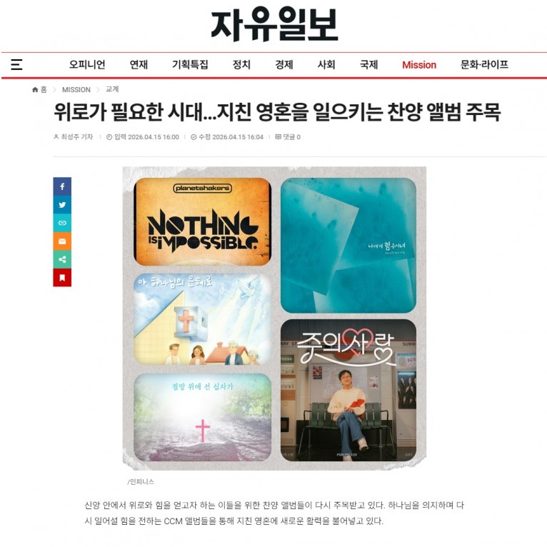 뮤직타임 [기획기사] 위로가 필요한 시대…지친 영혼을 일으키는 찬양 앨범 주목(자유일보)