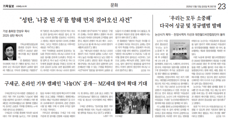 [기사] ‘우리는 모두 소중해’ 다국어 싱글 및 정규앨범 발매(기독일보)